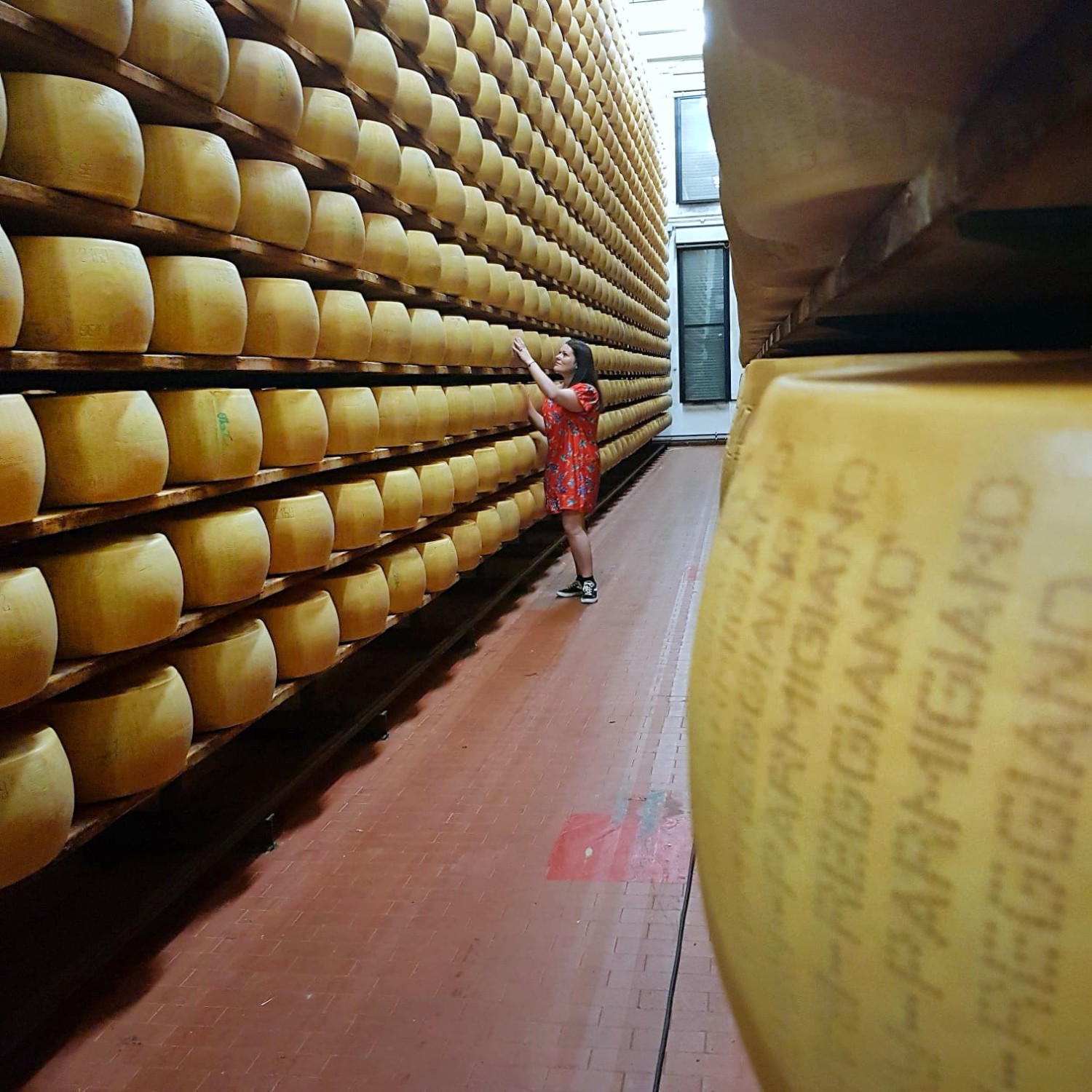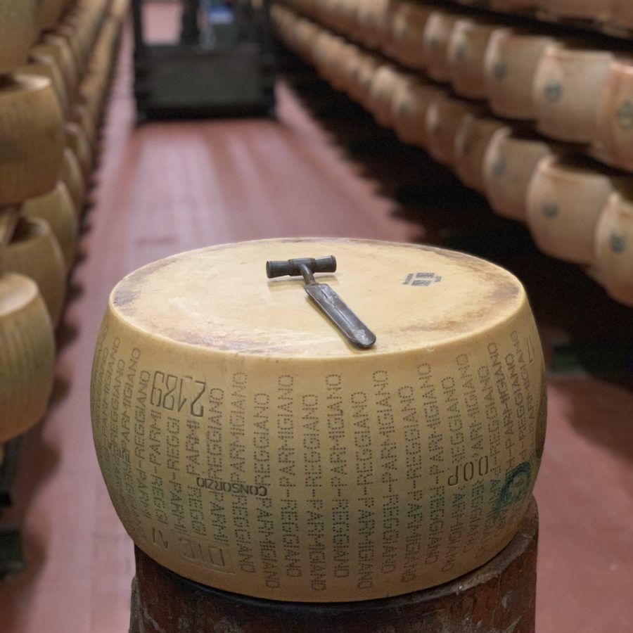 Nous avons visité un lieu de fabrication du parmesan Parmigiano Reggiano, véritable produit du terroir italien. Une visite instructive et gourmande.