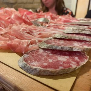 De bons produits mis en valeur, une trattoria comme on aime, on y trouve les classiques hors d’œuvres (prosciutto di Parma AOP, salame di Felino IGP, pancetta, culatta…). Accompagnés de torta fritta, de la mortadelle Favola avec de la focaccia, et une superbe glace maison.