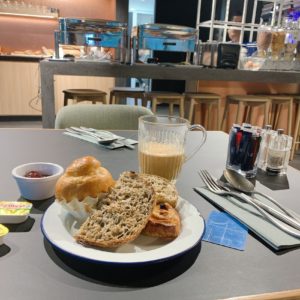 Insonorisée et climatisée, notre chambre, spacieuse pour notre famille de 4, comprend une télévision, un minibar, un plateau/bouilloire, un coin salon (le canapé s’est transformé en lit pour mon fils) et une salle de bain privative pourvue d’un sèche-cheveux et de chouettes articles de toilette gratuits.