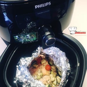 Pendant mes semaines de test de la machine Airfryer, j’ai essayé pas mal de recettes et surtout salées mais nous pouvons aussi faire des recettes sucrées. Il existe d’ailleurs une application dédiée pour vous donner beaucoup d’idées, elle est très bien faite. (Philips Airfryer sous Apple et Android) Je vous ai mis quelques photos, plus bas, des recettes que j’ai fait. Cette machine fait des frites fraiches comme des frites surgelées très croustillantes, attention tout de même à ne pas en mettre trop. Mais on peut faire pleins d’autres choses dedans. J’ai aussi fait du poulet avec des courgettes à la tomate, du poisson cuit en papilotte, et toute sorte de cuisson de pomme de terre ! C’est bien plus d’une friteuse, je trouve qu’on doit l’utiliser comme un mini four qui est de surcroit très pratique et très simple d’utilisation.