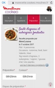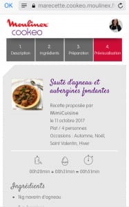 Application Mon Cookeo Test Recette Sauté d’agneau et aubergines fondantes