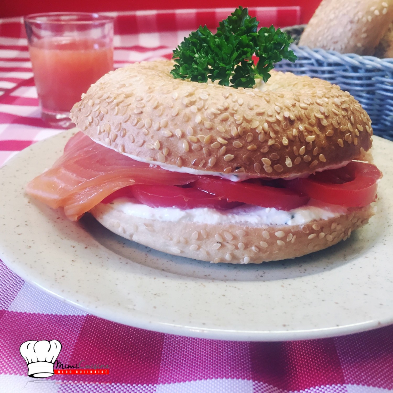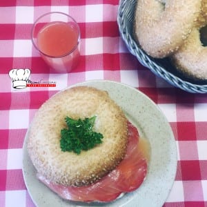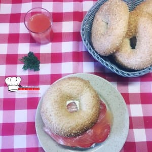 Bagel au saumon fumé faisselle ail persil