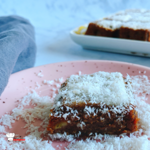 - Dans un moule tablette Demarle ou dans un moule à manquer en silicone, mettez la noix de coco et versez la préparation
