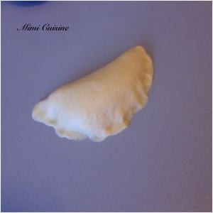 - Pour refermer, presser les deux côtés et refaire une boule (voir photo ci-dessous) puis les mettre sans trop serrer dans un moule recouvert de papier sulfurisé