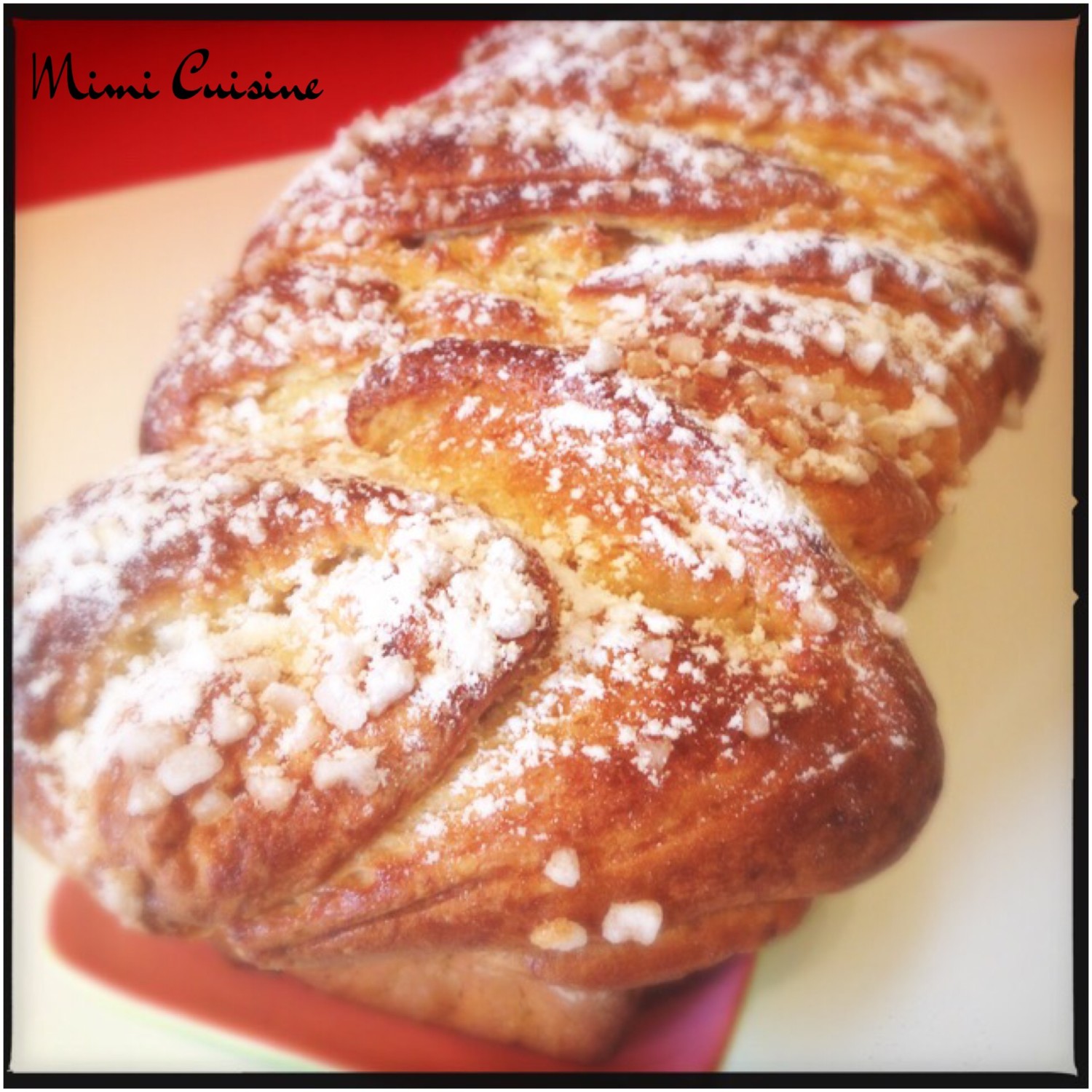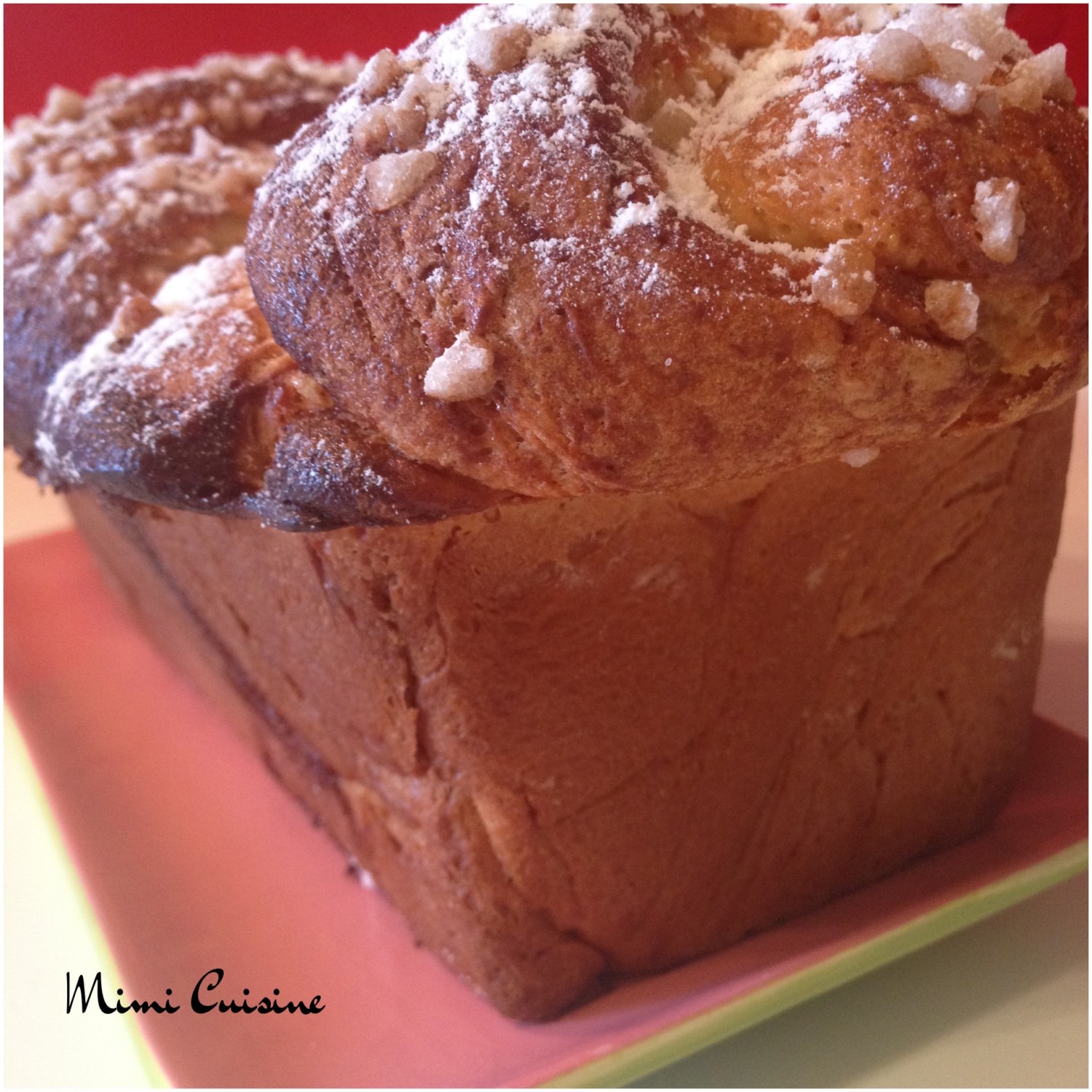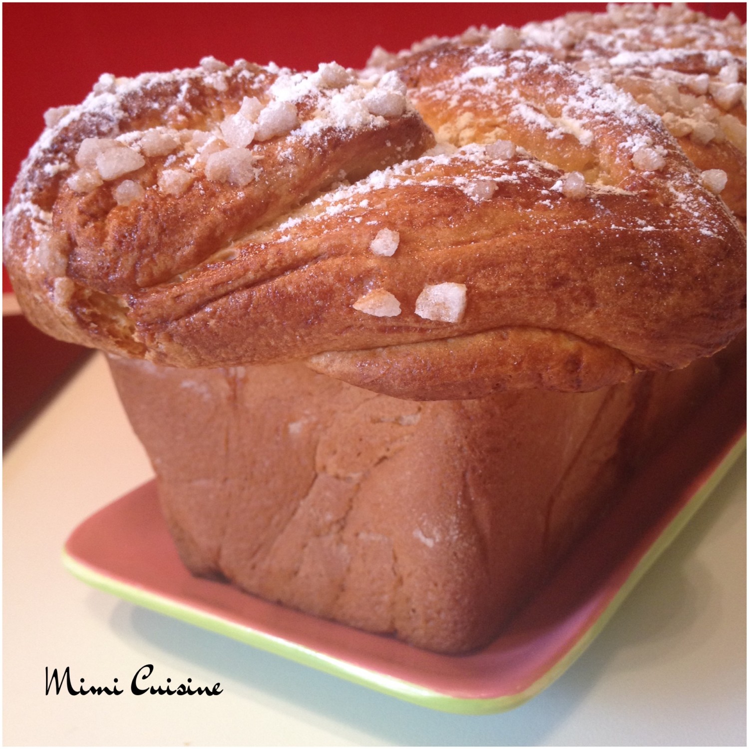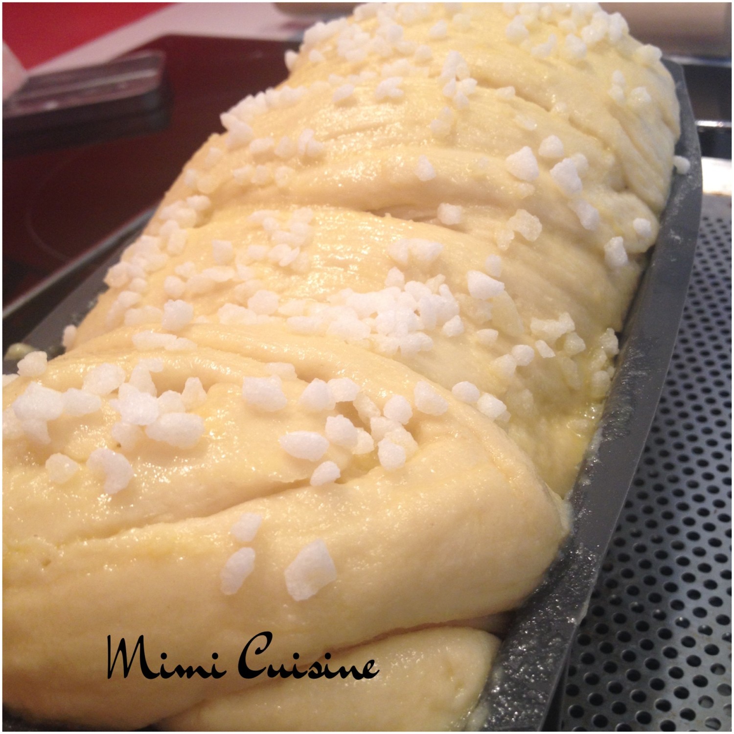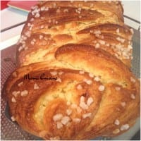 - Badigeonner la brioche du mélange jaune d’œuf+lait et saupoudrer de sucre perlé.