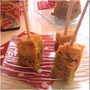 - Préparation du brownies : Couper en petits dés les poivrons, le chorizo, l’ail, l’oignon