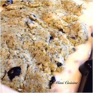 - Mettre cette préparation dans le moule carré, sur la pâte à brownies