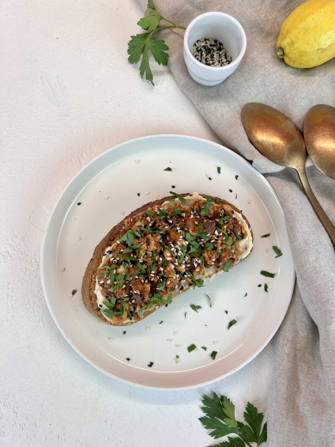 - Parsemez de persil plat ciselé & de graines de sésame