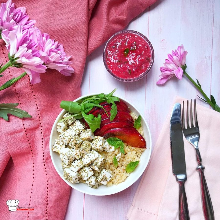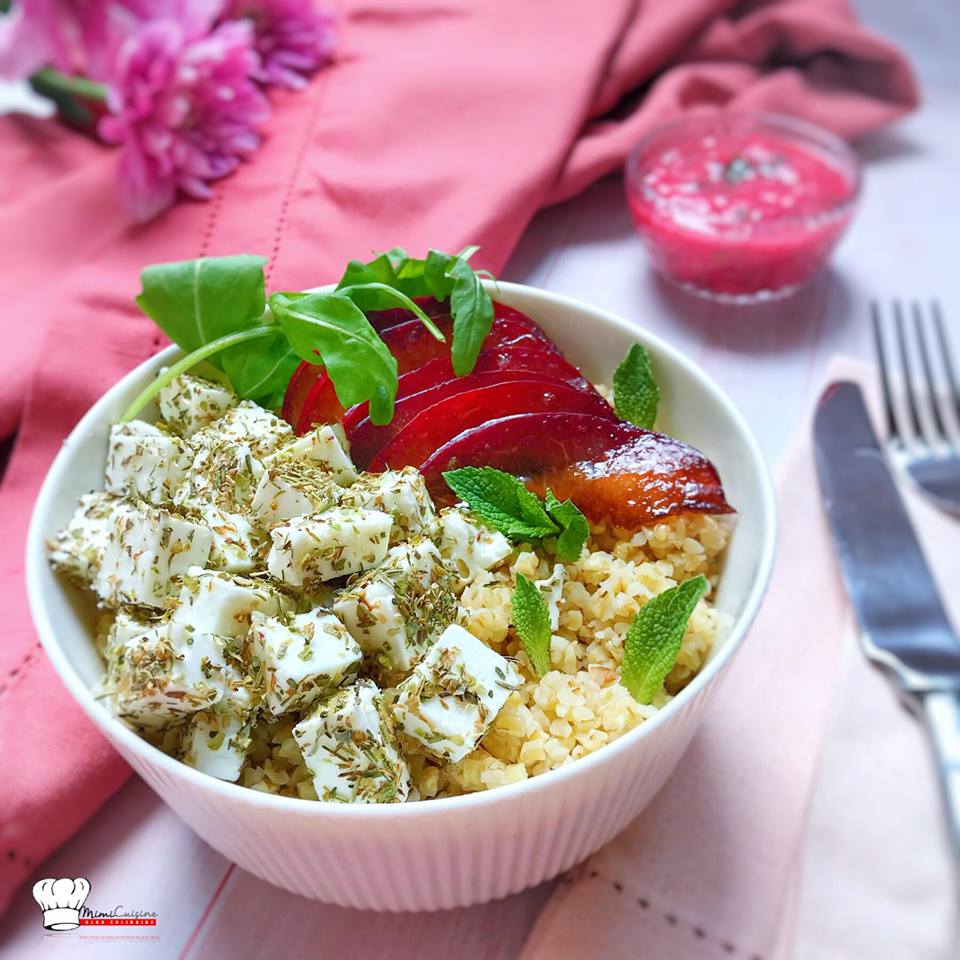 Buddah Bowl Boulgour Féta Roquette et Nectarines Sanguines