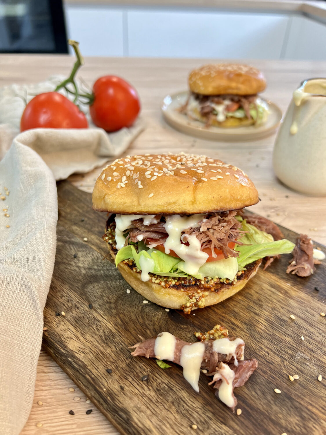 Ce burger revisité est une réinterprétation gourmande qui allie l’authenticité du confit de canard, un plat emblématique du Sud-Ouest de la France, à l’esprit contemporain du fast-food. Loin des burgers classiques, cette création culinaire apporte une touche d’élégance et de sophistication, tout en restant accessible et conviviale. Que ce soit pour un dîner raffiné entre amis ou un repas en famille, ce burger saura séduire par son équilibre parfait entre simplicité et sophistication.