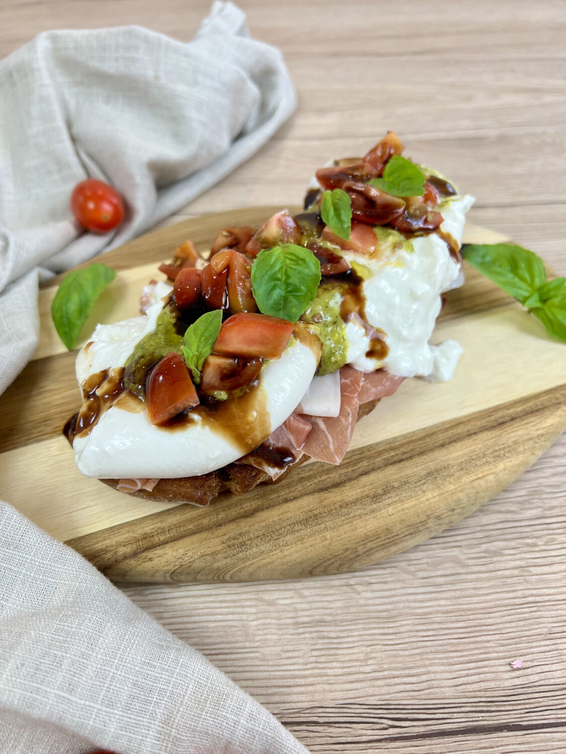 Pour préparer ce burrata toast, vous aurez besoin de quelques ingrédients de qualité : une burrata fraîche, du jambon de parme, du pain de campagne ou de ciabatta, des tomates cerises, du basilic, et de l’huile d’olive. En suivant notre recette, vous apprendrez à assembler ce toast de manière à mettre en valeur chaque composant et à créer une présentation visuellement attrayante.