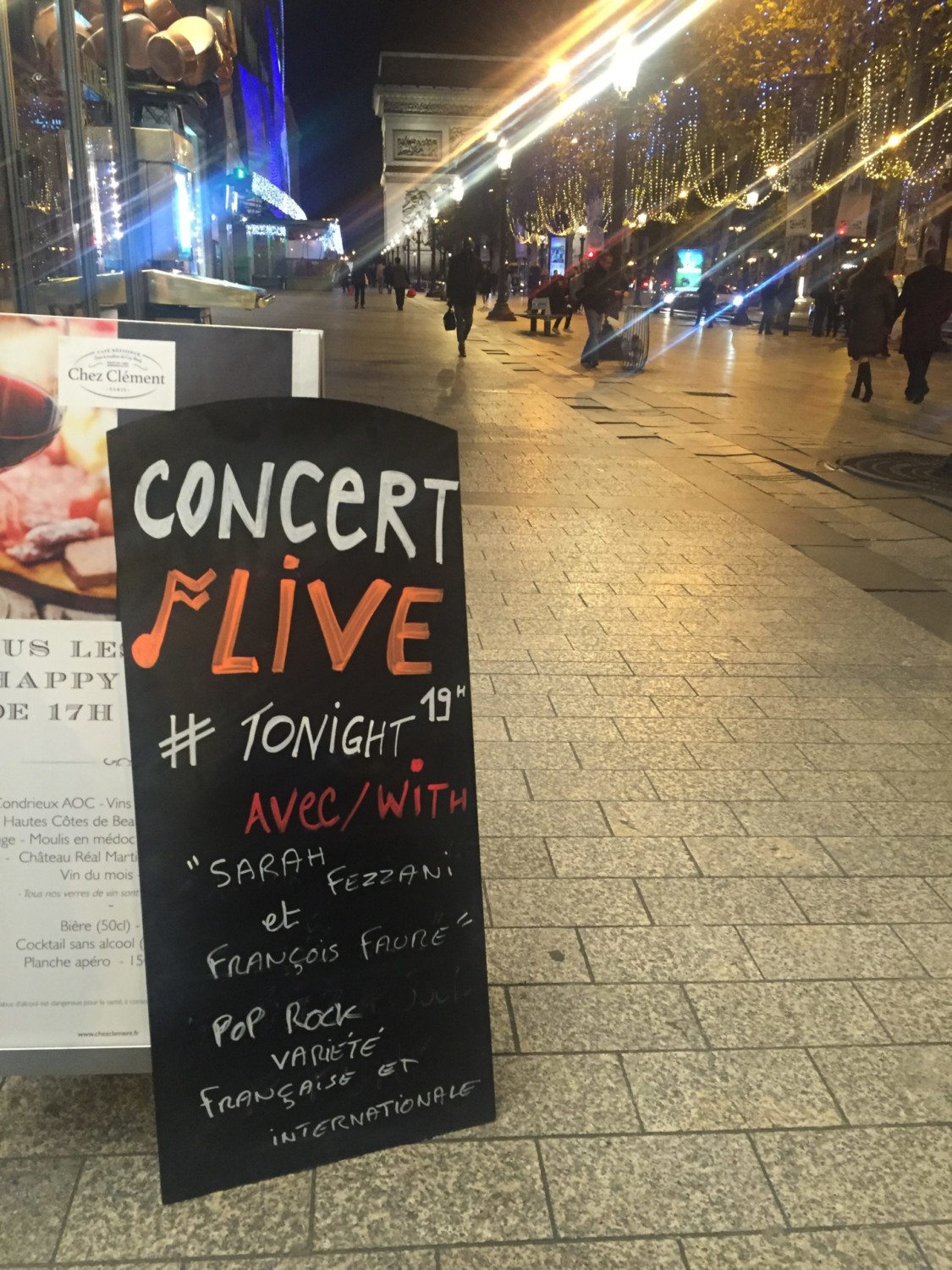 Vous pouvez retrouver Chez Clément Champs-Elysées des concerts live, aux rythmes Pop / Rock / Soul, de variété Française et Internationale et des artistes en pleine ascension sur une scène typiquement parisienne… Plus d’informations sur la programmation sur la page Facebook Chick’N Bar Paris