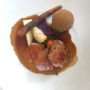 Plat : Noisette de veau français – Croquette champignon – Légumes de saison – Jus de viande de cidre – Cidre brut