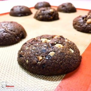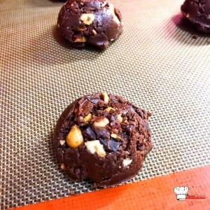 - Sur la plaque de cuisson de votre four recouverte de papier sulfurisé, déposez des boules de pâte en les espaçant. Utilisez une cuillère à glace pour former vos cookies cela va permettre qu'ils soient tous d'une taille identique