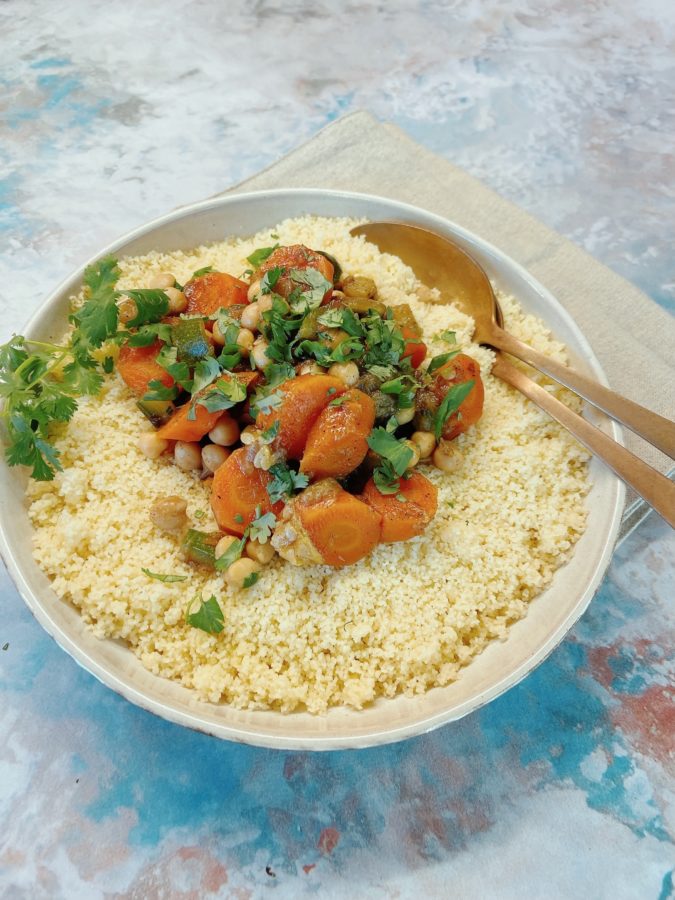 Jour 7 de mon challenge 1 mois dans mon assiette. On va préparer une recette exclusive de mon nouvel agenda de recettes. Un plat végétarien au Cookeo rempli de saveurs et de légumes. Je vous laisse donc découvrir ma recette végétarienne de Couscous Veggie Recette Cookeo