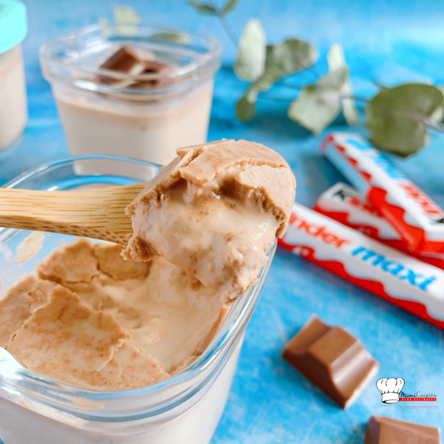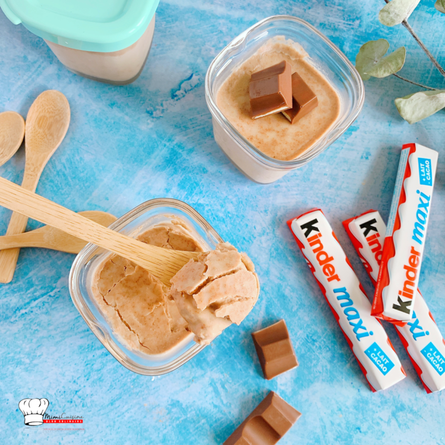 Dessert à la multidélices de Seb 100% plaisir. Des Kinder Maxi dans une crème dessert, de quoi régaler petits et grands gourmands de la maison. J’adore faire mes yaourts et crèmes maison depuis que j’ai la multidélice. C’est à déguster assez rapidement, dans la semaine car c’est fait maison. Ce qui veut dire sans conservateur. L’avantage est que l’on sait ce qu’on met dedans, je ne dirais pas que c’est plus économique. Mais c’est moi qui l’ai fait ! Place à ma recette de Crèmes desserts au Kinder Maxi Multidélices.