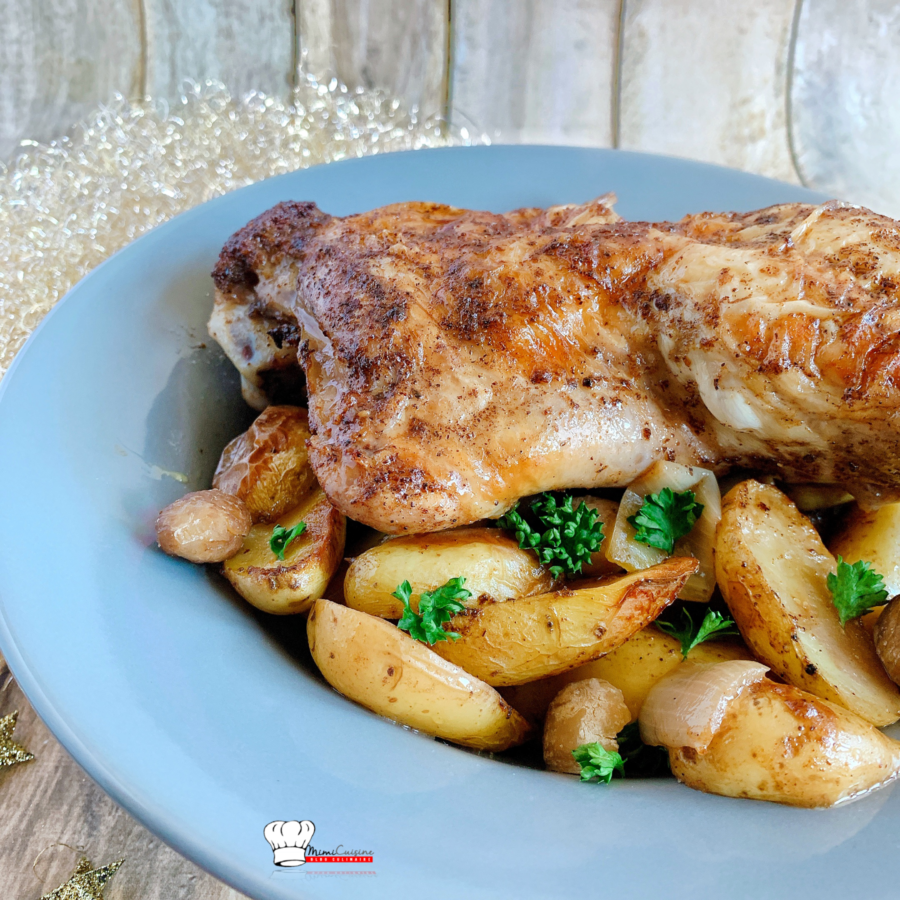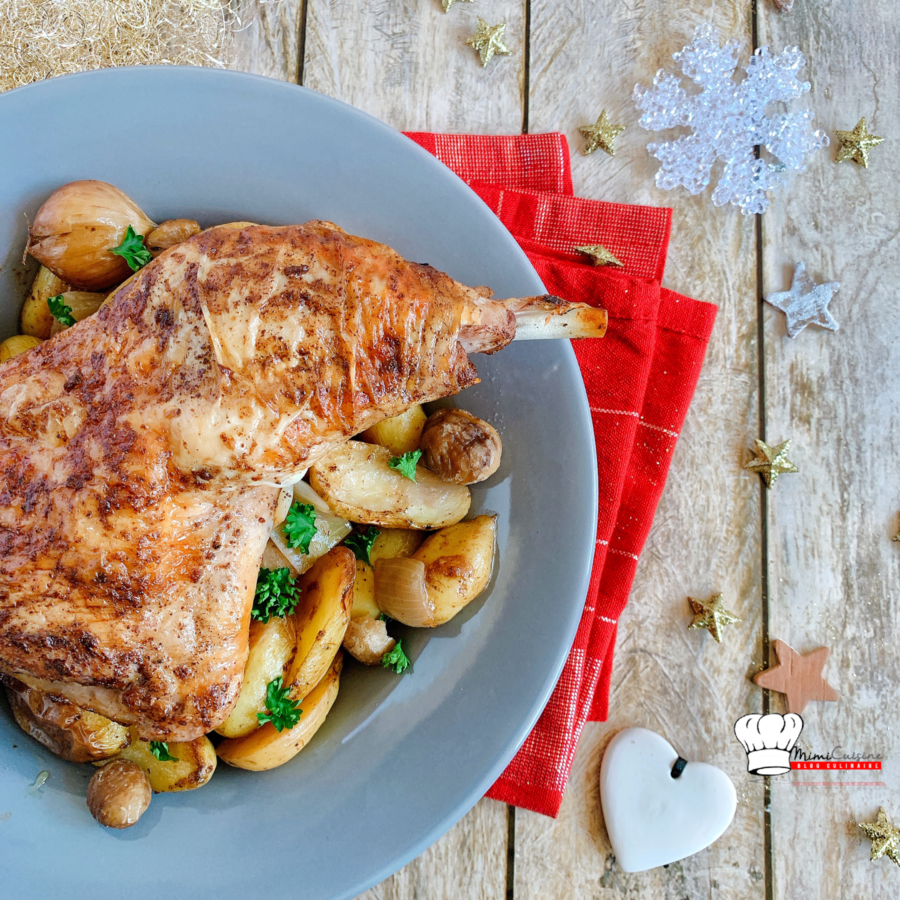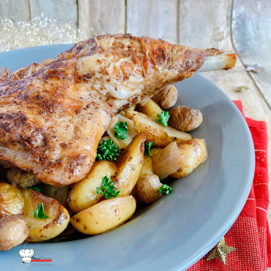 Recette festive pour Noël ou pour le réveillon du jour de l’an. Ce plat plaira au plus grand nombre. Simple et gourmand, il vous faut des cuisses de dinde, des pommes de terre, des marrons, de l’oignon, de l’ail, de l’huile, du beurre et du persil. Vous pouvez, préparer votre plat à l’avance et le cuire à la dernière minute afin de ne pas passer toute sa soirée en cuisine et de profiter de vos invités. Place à la préparation de ma Cuisse de dinde Pomme de terre Marron.