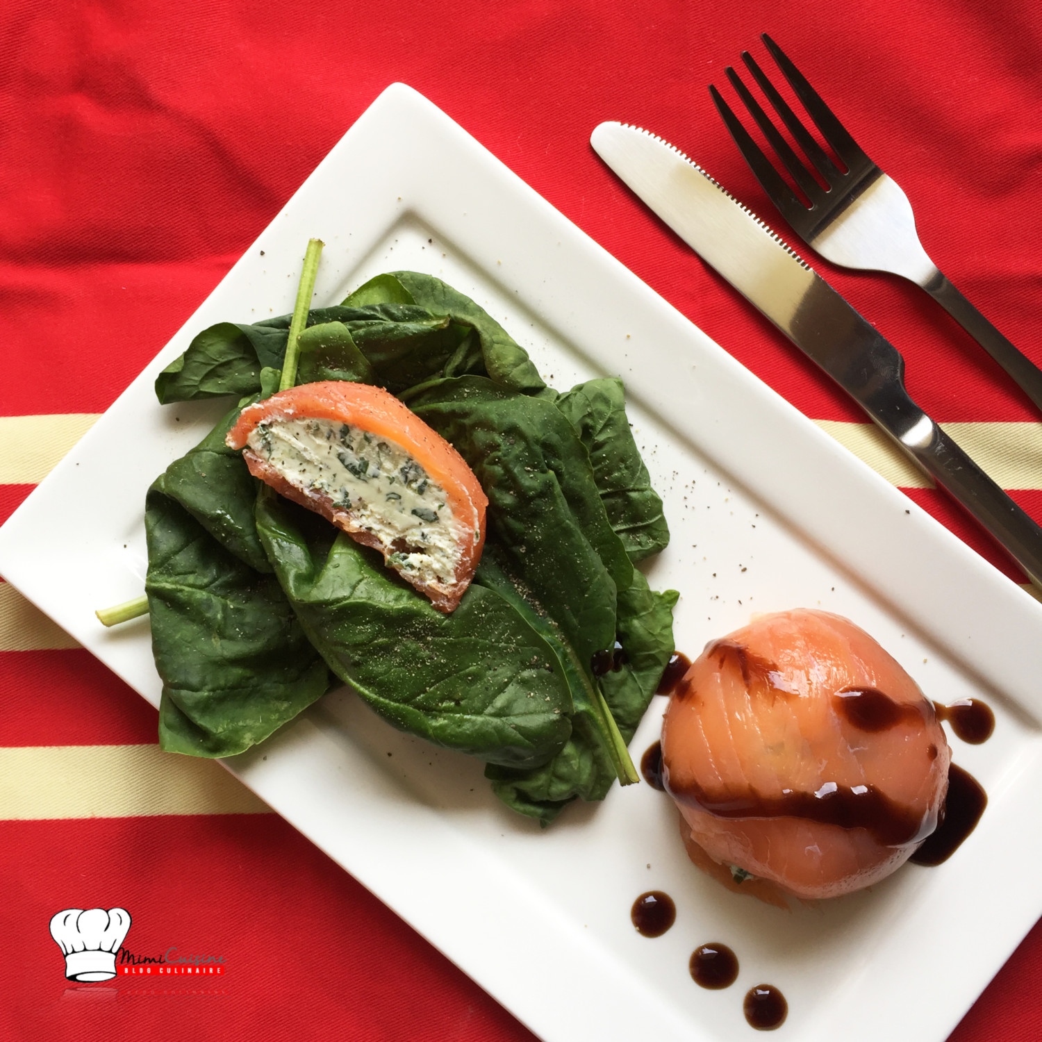 - Garnir les alvéoles du mélange de fromage frais puis rabattre le saumon afin de fermer les dômes