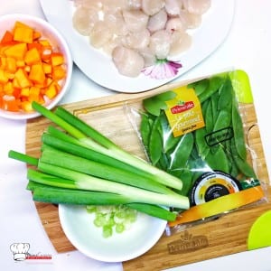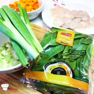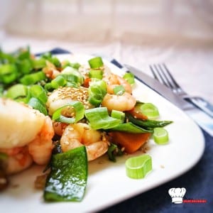 La semaine dernière, j’ai participé à un atelier culinaire sur le thème de la ciboule. Nous avons cuisiné, avec mon amie Poire et Cactus, des tapas en intégrant à chacune de nos recettes de la ciboule gourmande Priméale. Un moment de partage entre blogueurs fort sympathique. La ciboule est un produit qui se consomme dans son intégralité. Le bulbe est la partie la plus tendre, avec son petit gout sucré il peut se consommer cru ou cuit. Le corps est la partie la plus fibreuse, avec son gout corsé il peut se consommer cuit dans un potage ou un wok par exemple. Le tige se déguste crue ciselée en aromate. Aujourd’hui, je vous propose un plat où nous allons utiliser les trois parties de la ciboule. Place à la préparation de mon Duo Crevettes Noix de Saint Jacques Ciboule et Miel.