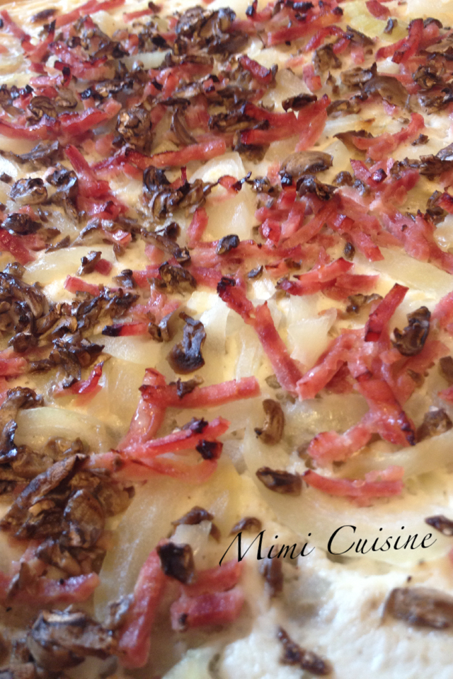 - Enfourner 10 minutes, puis mettre votre four en mode Grill, et laisser votre flammekueche encore quelques minutes. Surveiller bien la cuisson pour ne pas vous retrouver avec une tarte brûlée
