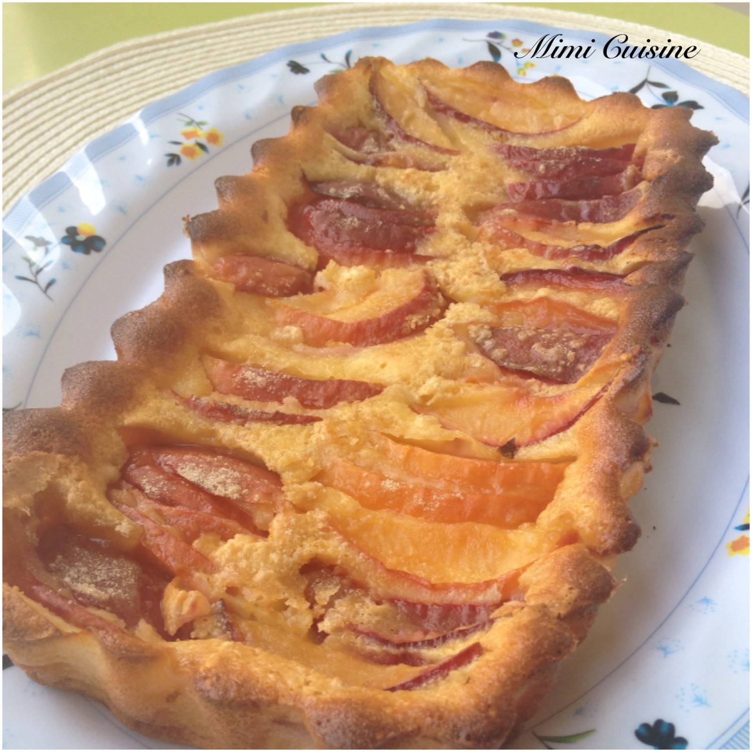 - Déposer les nectarines dans le fond de votre moule et ajouter le mélange