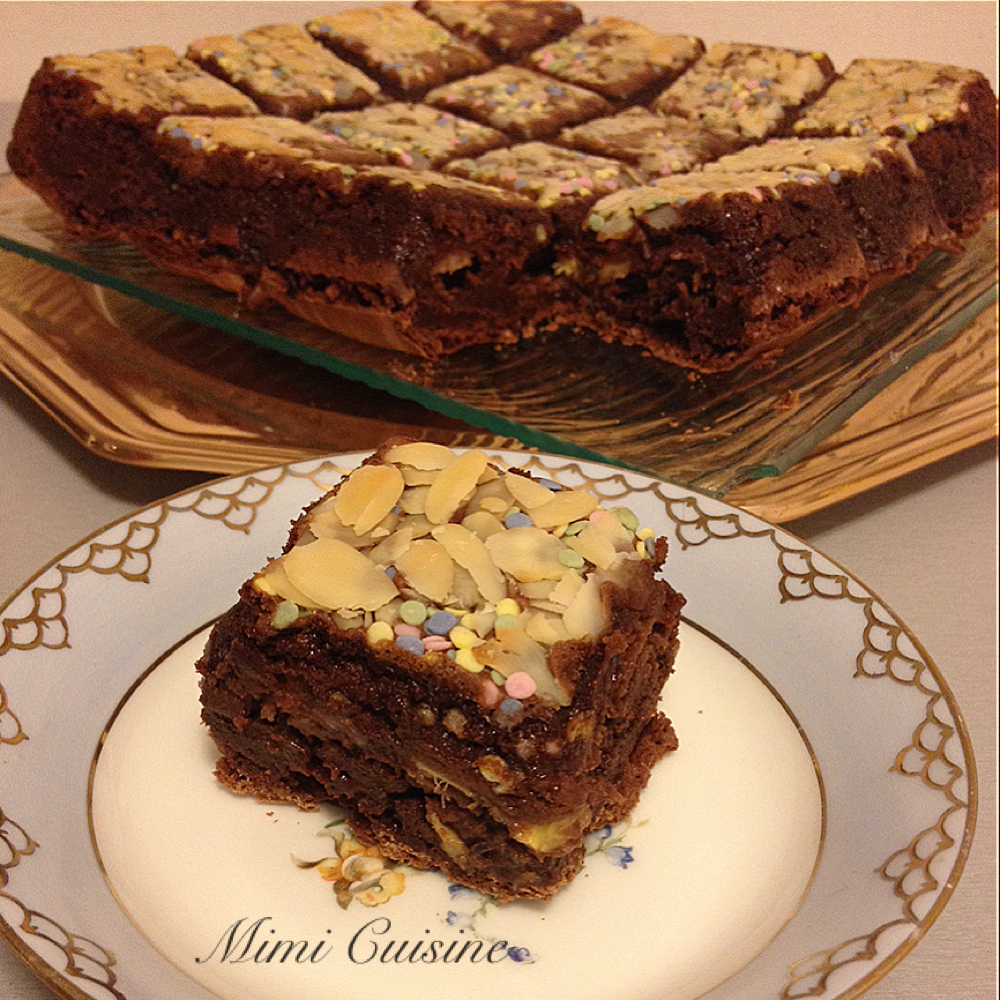 - Mettre dans le fond du moule les confettis et les amandes effilées