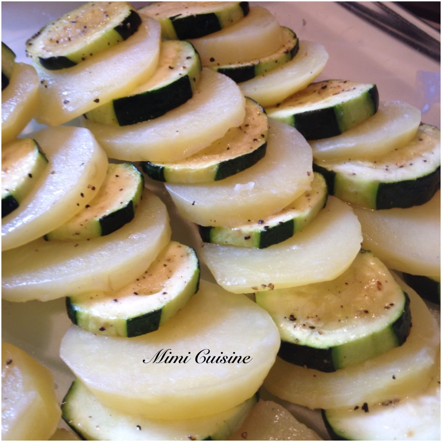 - Éplucher et couper les pommes de terre et les courgettes en tranches pas trop épaisses