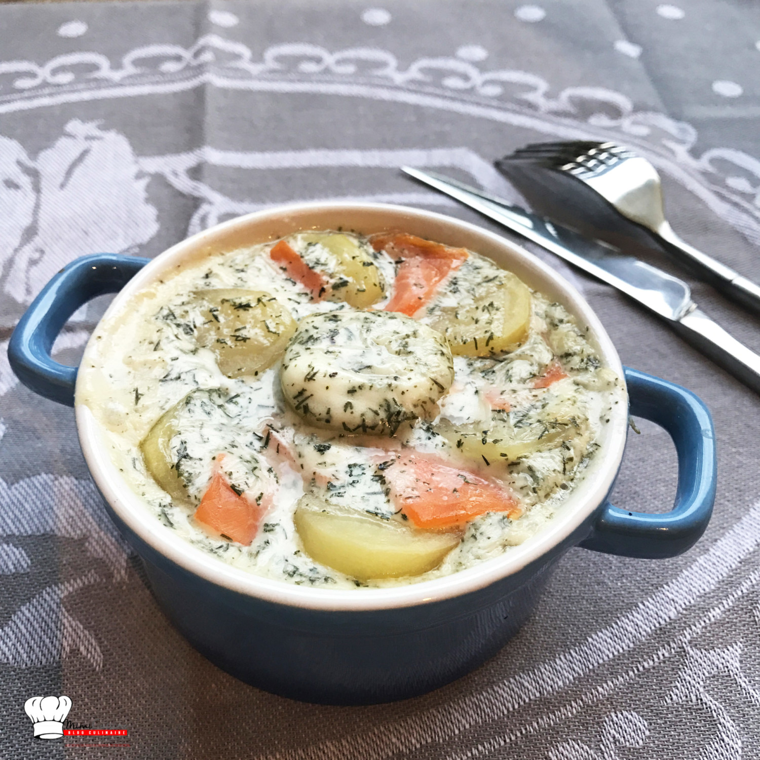 J’ai juste doublé les quantités de pommes de terre et de truite et ai gardé vos proportions de crème : nickel.