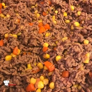 - Puis, ajoutez la viande hachée et laissez mijoter pendant 10 minutes, salez et poivrez puis ajoutez le maïs. Stoppez la cuisson