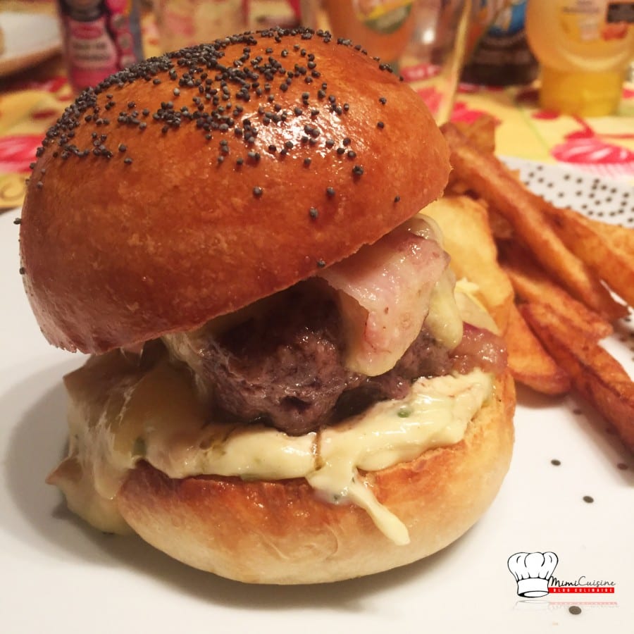 Hamburger savoyard Tomme lard fumée et confit d’oignons