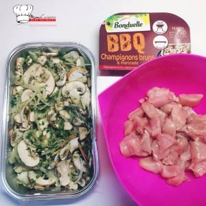 - Dans un saladier, mettre les champignons et mélanger avec la petite sauce citronné.