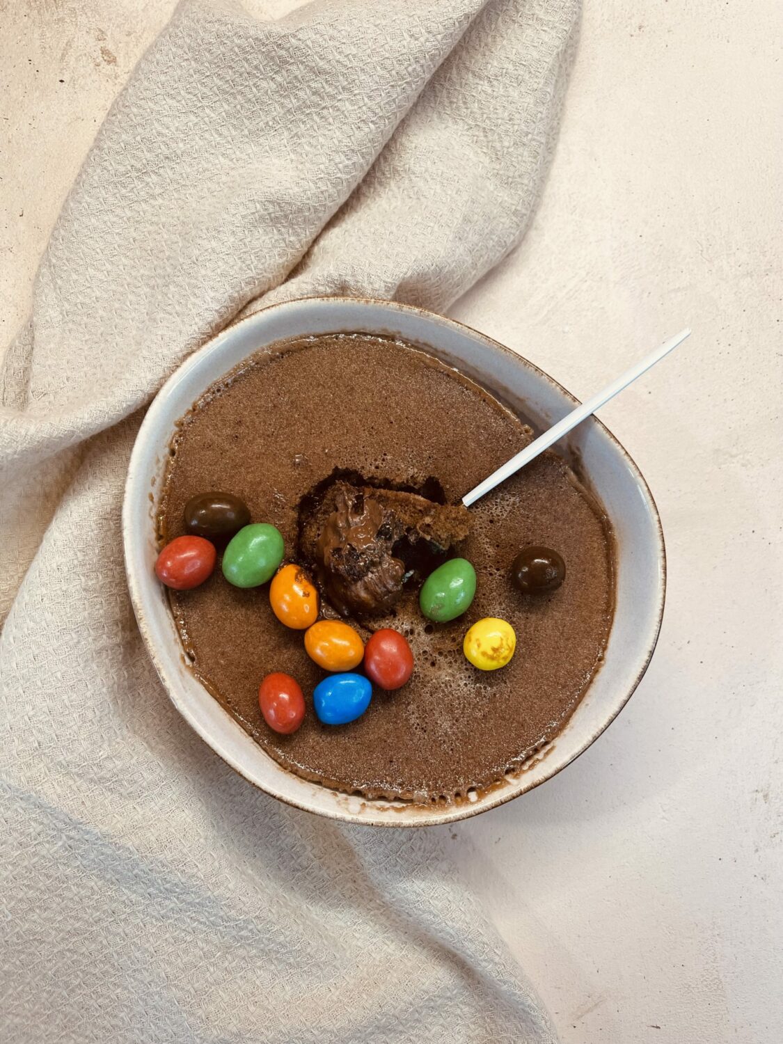 Desserts IndividuelsGâteaux et TartesGourmandises individuellesIdées recettesPetit déjeuner et GoûterRecettesRecettes pour PâquesSucrées Mug Cake Nutella M&M’S