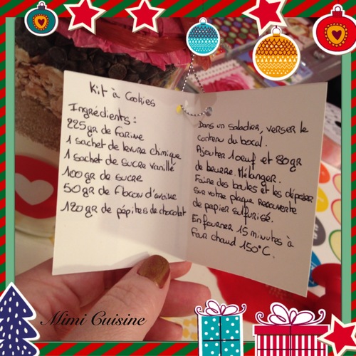 Un kit à cookies fait maison à offrir à Noël pour un cadeau réussi ! Ce kit gourmand est un cadeau unique et très original. Mettez tous les ingrédients dans le bocal et indiquez sur une carte les ingrédients et les instructions pour préparer les cookies. N’hésitez pas à décorer le bocal à convenance afin que cela fasse un cadeau personnalisé.