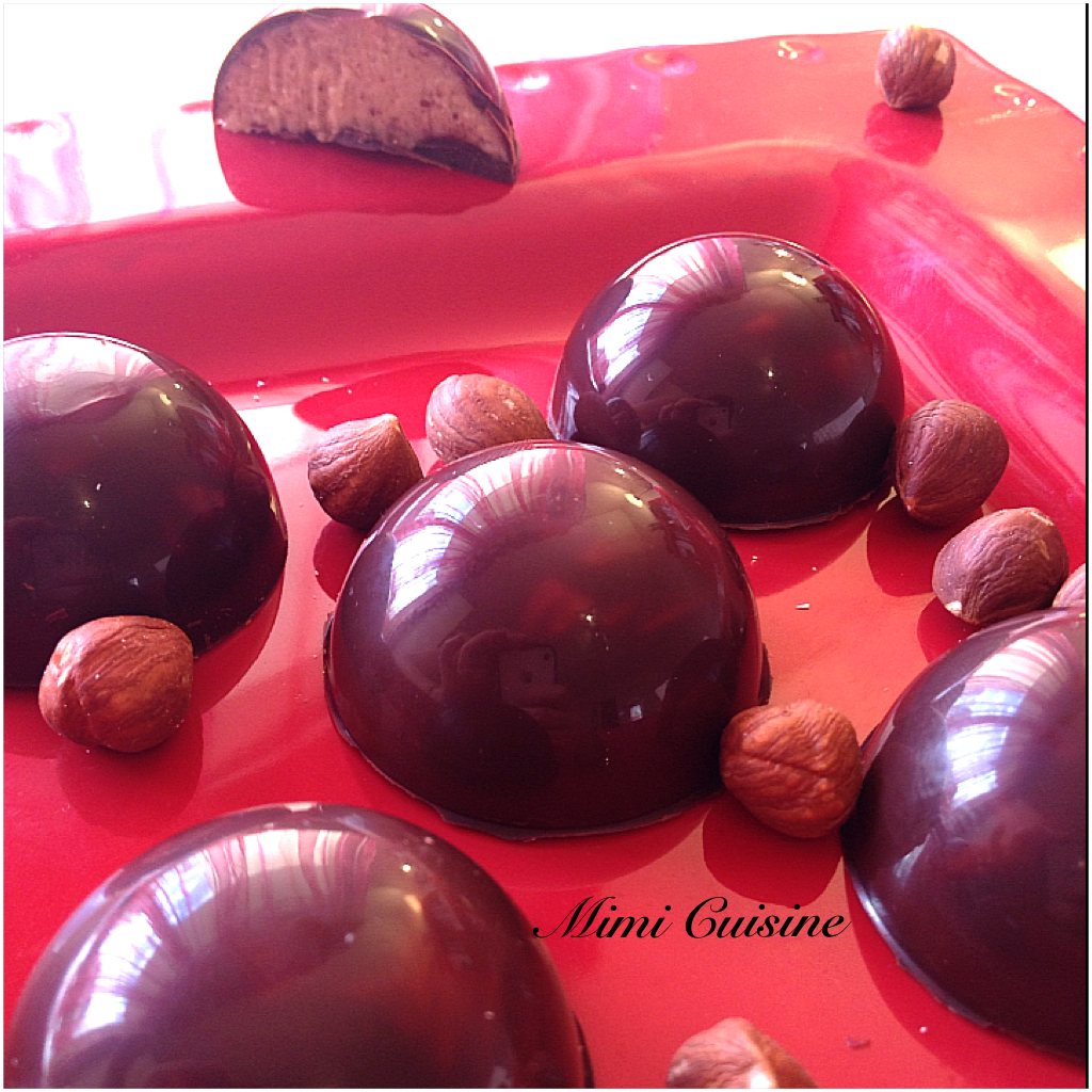 - Avec un pinceau, mettre le chocolat dans les moules "demi-sphère"