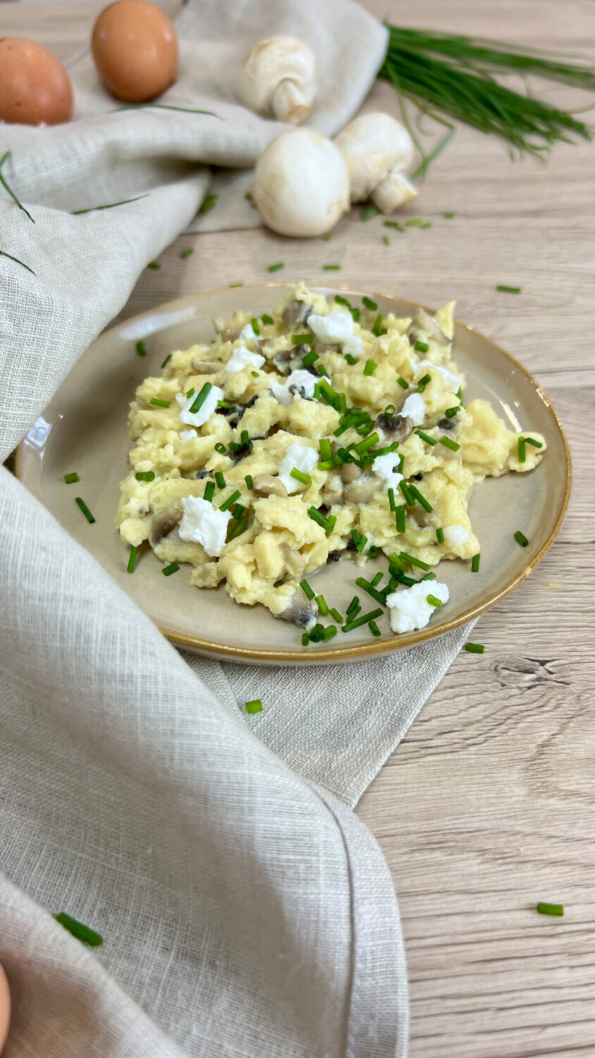 Les œufs brouillés champignons chèvre frais marient harmonieusement la douceur du chèvre frais avec la texture terreuse des champignons sautés, créant ainsi une symphonie de saveurs et de textures en bouche. L’onctuosité des œufs brouillés vient compléter ce tableau gustatif pour une expérience culinaire tout en nuances.