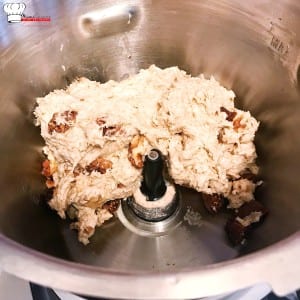 - Ajoutez les farines, le sel, l'huile puis lancez le programme pâte P1 pour 2 minutes et 30 secondes. Quand il reste 40 secondes, ajoutez les noix et les figues coupées en 4