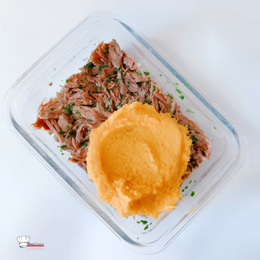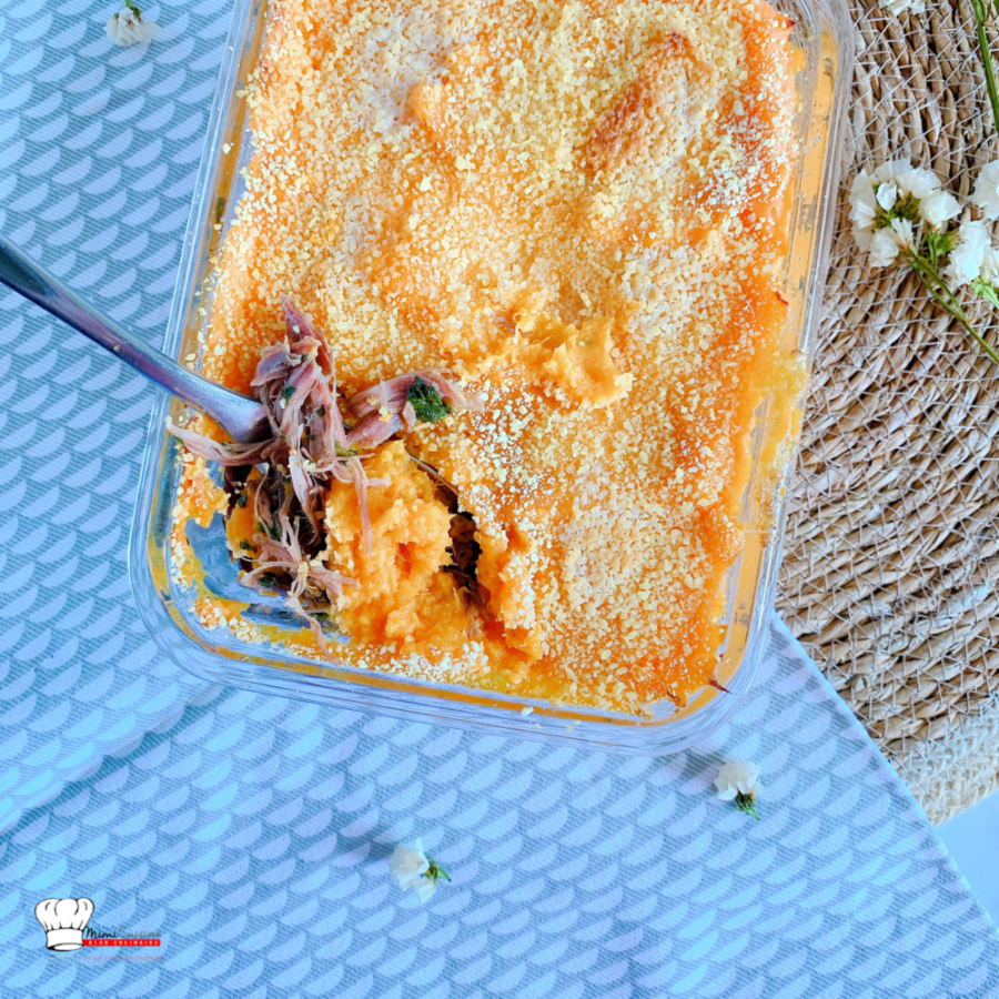 - Recouvrez de purée de patate douce et saupoudrez de chapelure.