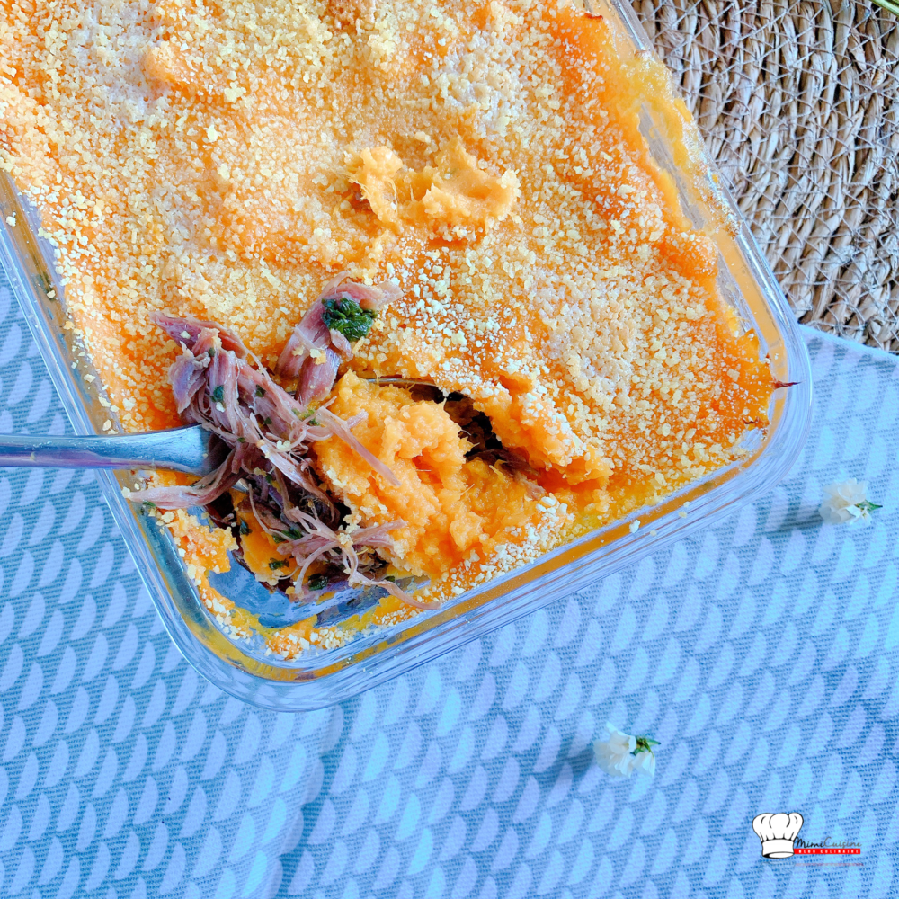Délicieuse Recette à tester pour les fêtes de fin d’année à base de confit de canard et de patate douce. Une petite merveille pour nos papilles. C’est une recette issue de mon livre Mes recettes de saison au Companion aux éditions Larousse Cuisine. Place à la préparation de mon Parmentier Canard Patates Douces Recette Companion