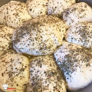 - Verser 2 cuillères à soupe d'huile d'olives sur les boules de pizza et saupoudrer d'origan