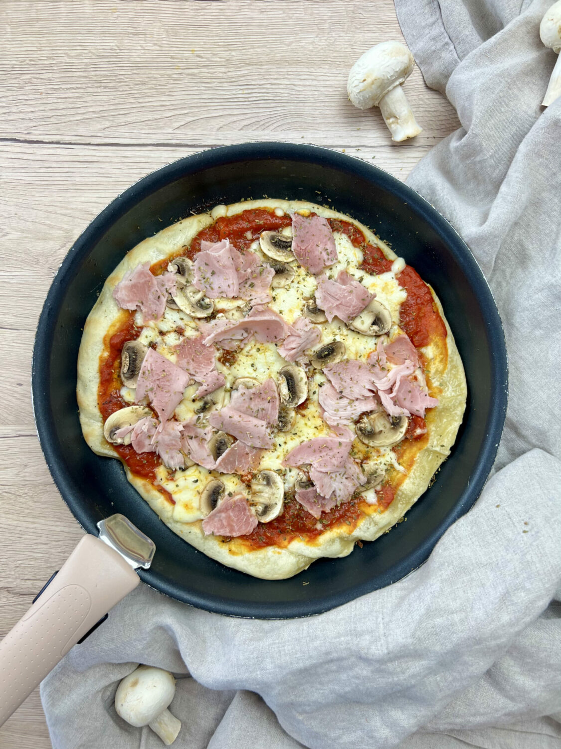 La pizza reine à la poêle est une alternative pratique et savoureuse à la pizza cuite au four, où une base de pâte à pizza est garnie de sauce tomate, de jambon, de champignons et de fromage, puis cuite à la poêle jusqu’à ce que le fromage fonde et que la pâte soit croustillante. Cette méthode de cuisson rapide permet d’obtenir une pizza savoureuse en un temps record, idéale pour les soirées où vous avez envie de manger une bonne pizza sans attendre.