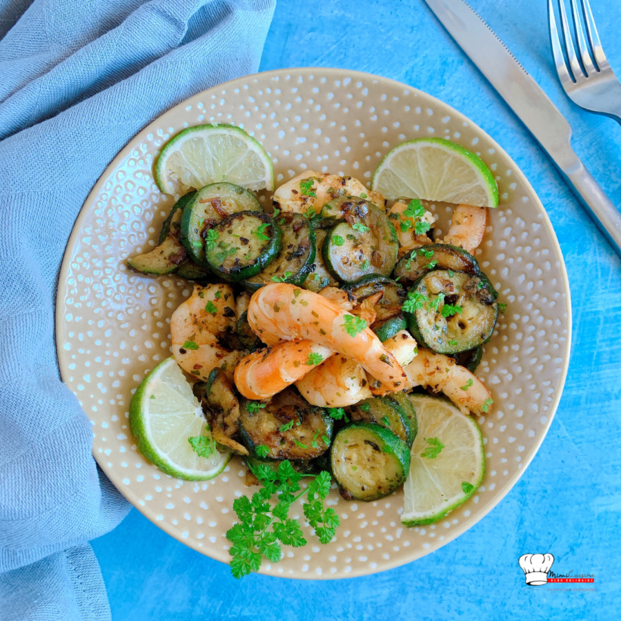Poêlée de courgettes et gambas ail et persil