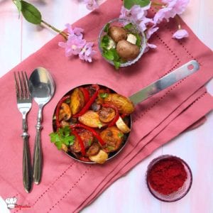 Le Comité National Interprofessionnel de la Pomme de Terre (CNIPT) m’a gentiment proposé de réaliser une recette avec cette délicieuse pomme de terre. Ce fut une superbe occasion de vous la faire découvrir et de vous proposer une recette de saison. Place à la préparation de ma recette de Poêlée pommes de terre primeurs champignons et poivrons. Retrouvez plus de recettes de pommes de terre sur recette-pomme-de-terre.com