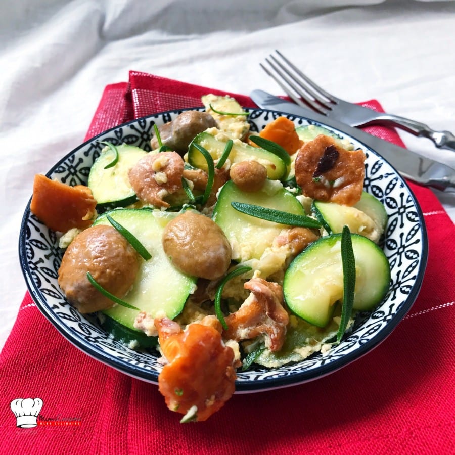 Poêlée végétarienne Cèpes Girolles Courgettes Oeufs Romarin