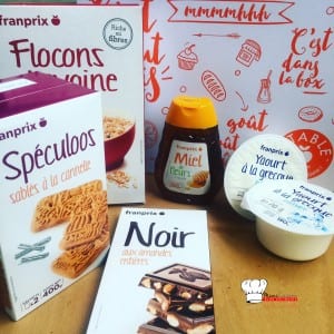 La semaine dernière j’ai reçu la box Franprix regardé la photo ci-dessous. Ils m’ont contacté pour m’envoyer une box surprise et réaliser une recette sur le thème de la rentrée scolaire. Les vacances sont belles et biens terminées, c’est le moment de retrouver les bancs d’école pour nos loulous et voici une délicieuse recette de Porridge flocons d’avoine miel et chocolat noisettes pour que nous ayons des forces pour entamer ces rudes journées ! Vous pouvez me donner vos idées de recettes sur le thème de » la rentrée scolaire » que vous aurez réalisé avec cette box (photo ci-dessous)