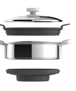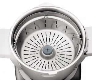 Cuiseur vapeur vendu séparément aux prix de 130€. Il est sur deux niveaux de cuisson, un panier extérieur, à placer sur l’appareil.