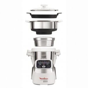 Un robot cuiseur prépare les aliments et les cuit. Il pétrit et il hache, il cuit vapeur et il rissole… et bien d’autres choses encore. Le tout, en un seul appareil conçu par l’une des marques incontournables de la cuisine : Moulinex.