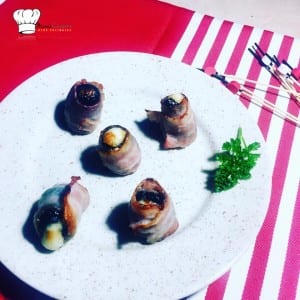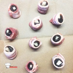 - Enrouler chaque pruneau dans une demi tranche de lard fumé