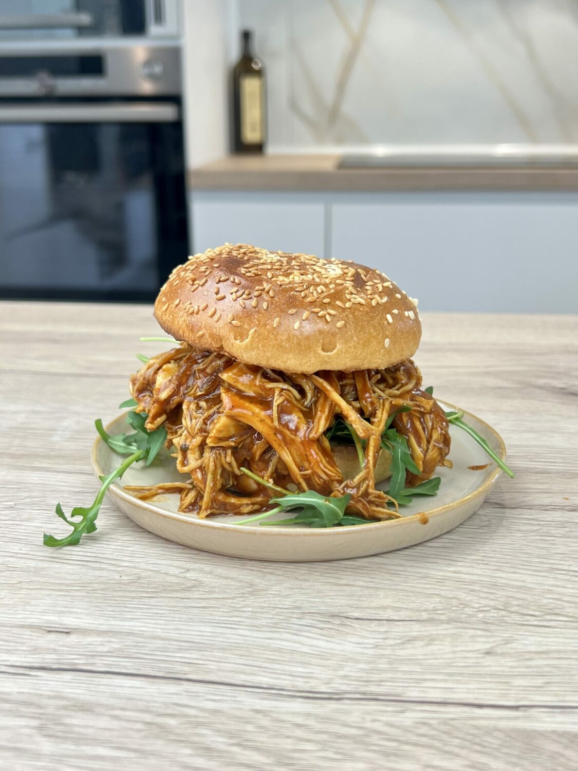 À la cuisson la viande de poulet sera parfaitement cuite et tendre, prête à se défaire en filaments moelleux sous ta fourchette, accompagnée d’une sauce onctueuse et savoureuse de bbq qui vient compléter cette expérience gustative.