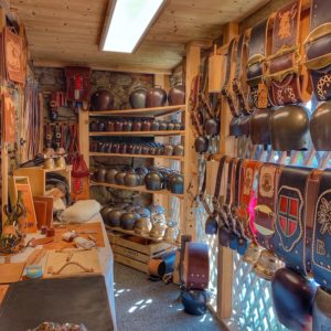 Expérience incontournable quand on visite le village, l’atelier-boutique de Didier Perrillat le bourrelier installé dans l’un des plus vieux chalets. Cet artisan, figure du Grand-Bornand, perpétue un savoir-faire ancestral avec le travail du cuir. Fils d’agriculteur, il est tombé amoureux à 14 ans de ce métier devenu rare, quand les bourreliers fabriquaient encore des harnachements pour les chevaux. Il propose et anime des ateliers d’initiation au travail du cuir et contribue par son art à la sauvegarde de ce vieux et noble métier. Impossible de repartir de là sans un ouvrage « Made in France ».