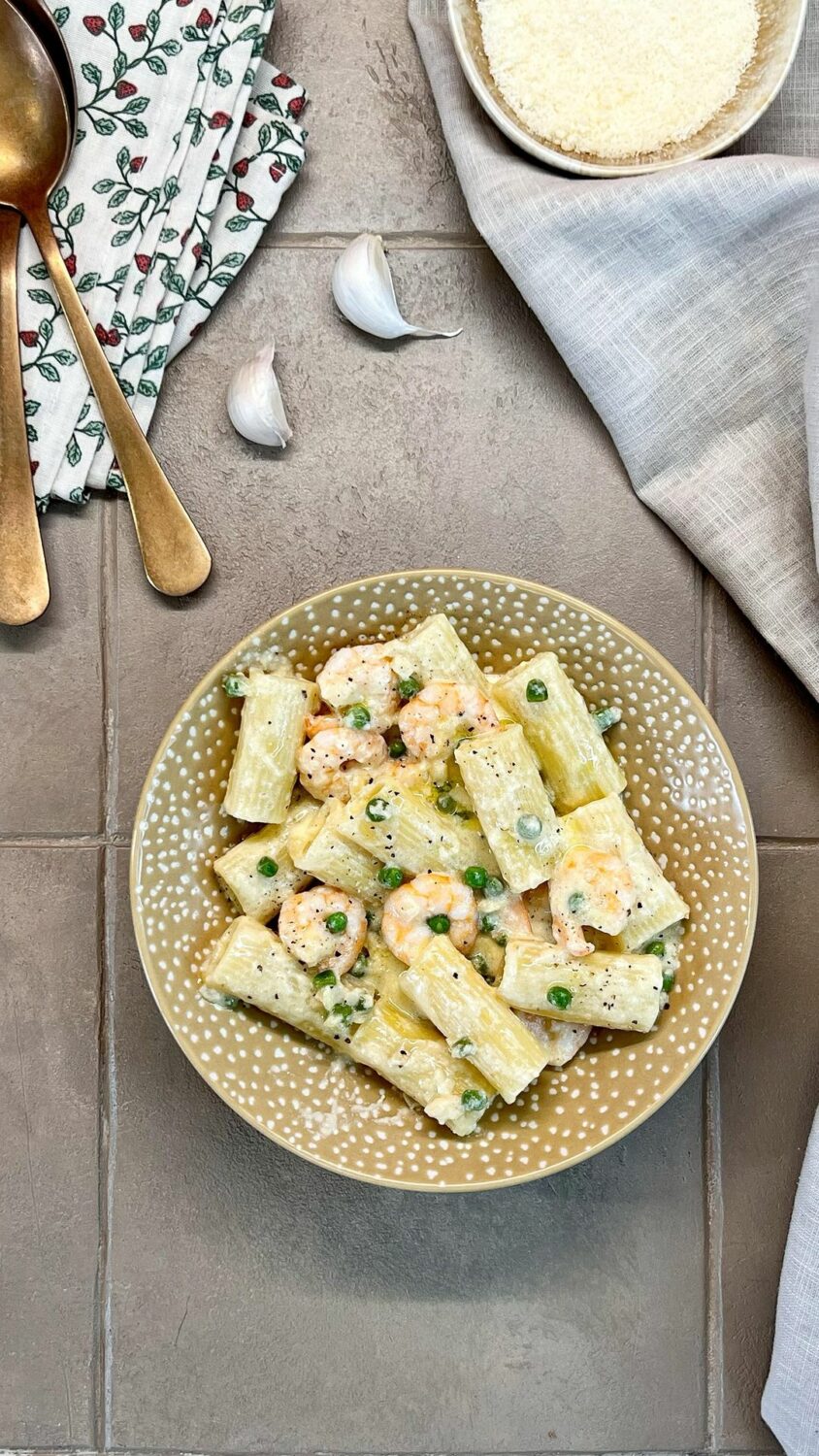 Le parmesan fraîchement râpé saupoudré sur le dessus ajoute une touche finale irrésistible à ce plat déjà divin. Son goût corsé et salé vient sublimer les arômes des crevettes et des pâtes, créant une symphonie culinaire enchanteresse qui vous séduira totalement.